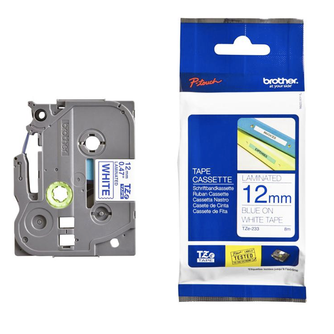 Brother Tape Cassette Blue on White 12mm TZE-233